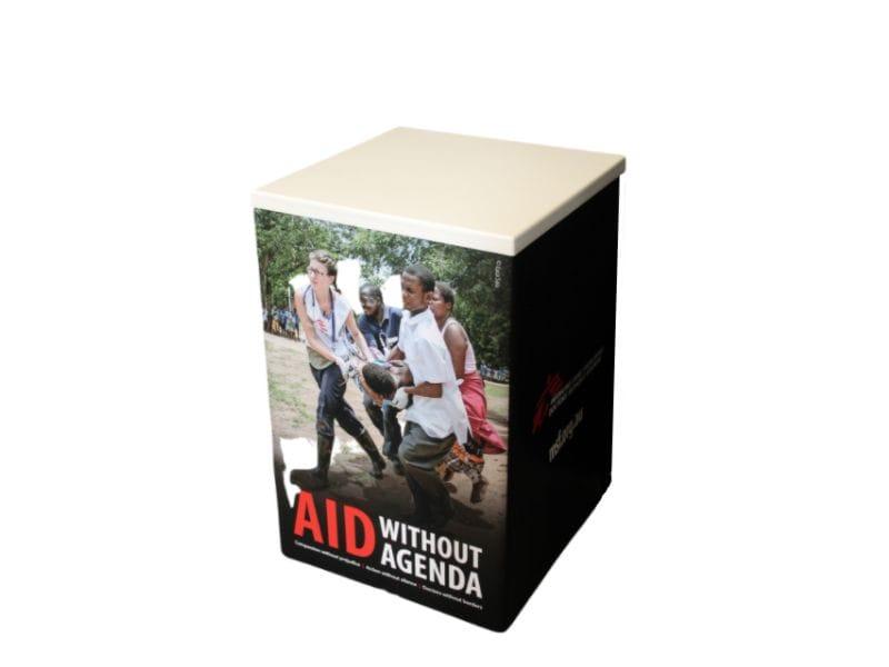 The most popular method of branding these demonstration tables is with an interchangeable graphic ‘wrap’ that covers the front and two sides of the table base. The wrap is printed full colour on hard-wearing and durable banner vinyl. Industrial strength VELCRO® is attached to allow the wrap to quickly and easily be attached to the table base, and to be swapped over quickly if required.