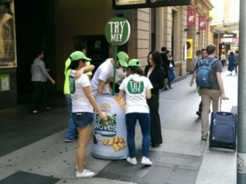 As with all our briefs, we got our heads together and came up with a plan that would work. Creating a sampling trolley that was made to look like a Grain Waves chip packet – simple, right?