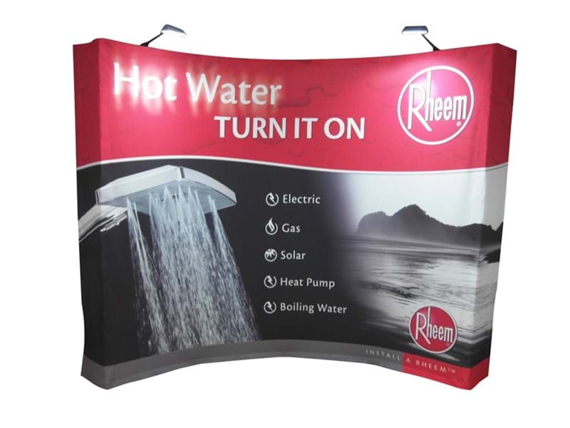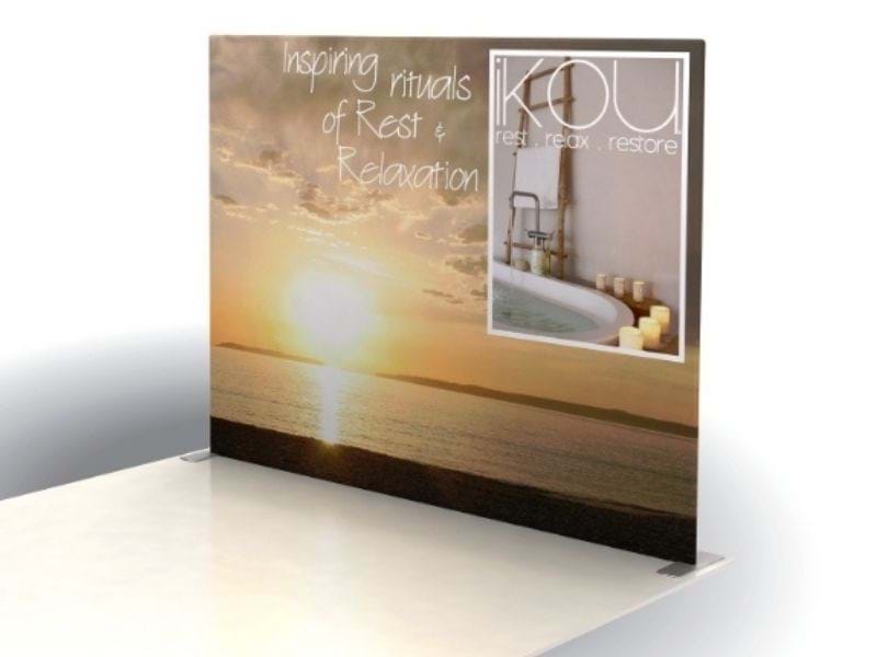 (Pricing includes: Full colour dye sublimation printed, 320GSM single sided fabric skin - straight frame with flat printed end caps. Supplied with aluminium pop-up spider frame, carry bag and 5 year hardware warranty).
