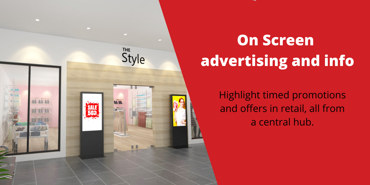 We have developed on-screen communications for retail, events, exhibitions stands, offices and showrooms.