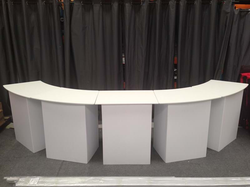After breaking down the component pieces that Foxtel wanted to showcase we were able to put together a single design layout that could be used at all of their event locations. Using a custom-size giant SuperWall backdrop as the key visual feature was an absolute must, as the low reflection of the printed fabric graphic works perfectly under TV lights. We then constructed a judges table that consisted of a number of separate smaller tables that joined together side-by-side to create one large desk area. By adding a giant one-piece graphic wrap, the tables were visually brought together so as to appear as one.